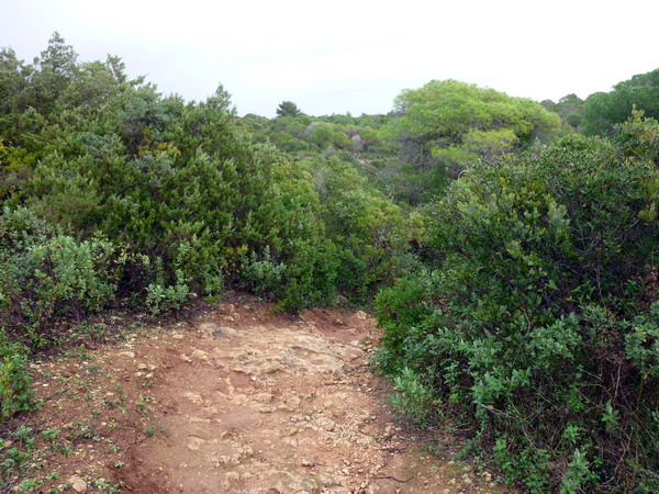 Der Weg, der an manchen Stellen nur ein holpriger Trampelpfad war, führte durch ein Tal auf dessen anderer Seite ein saftiger Pinienwald lag. Mehrere Spaziergänger kamen uns entgegen, alle mit einem dieser modernen Wanderstöcke in jeder Hand, kaum einer grüßte zurück.