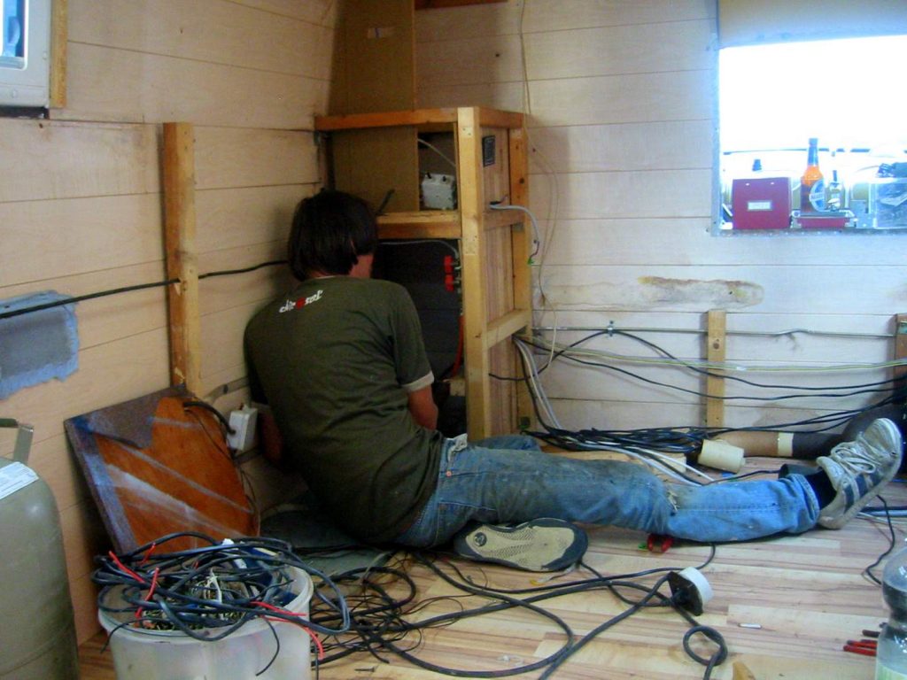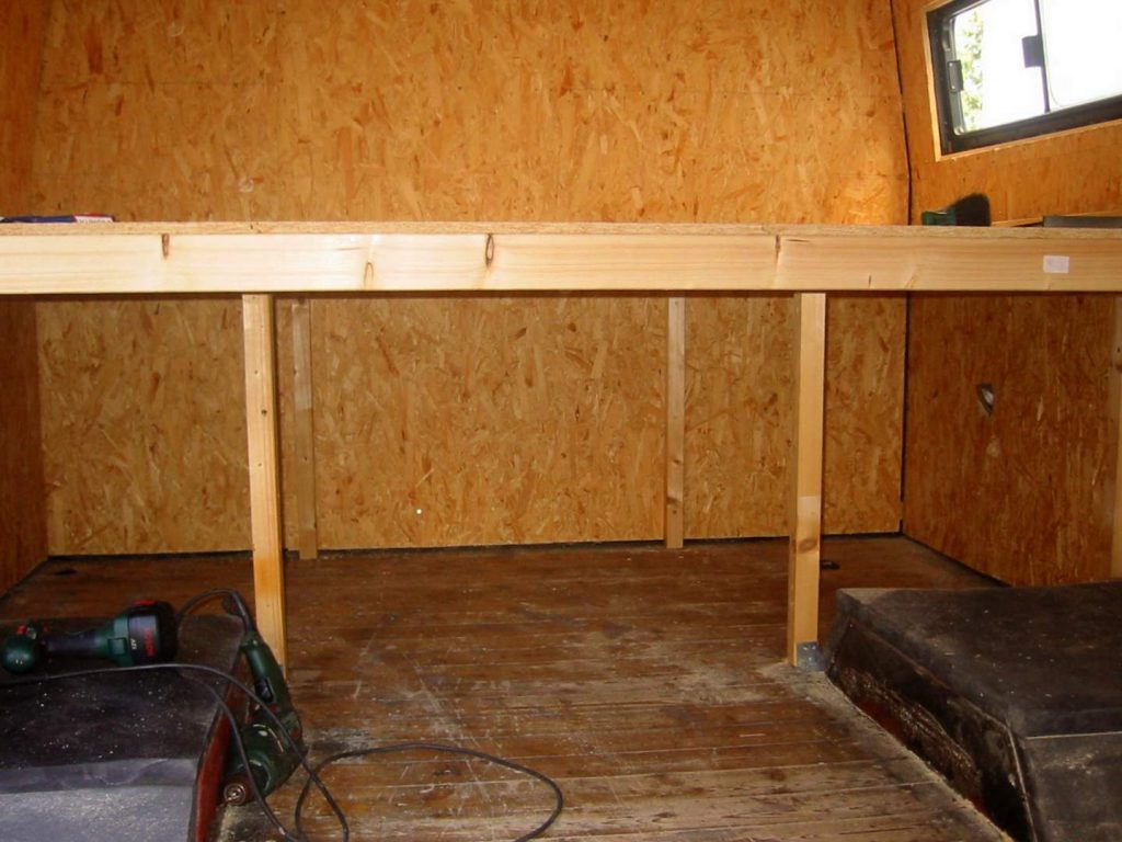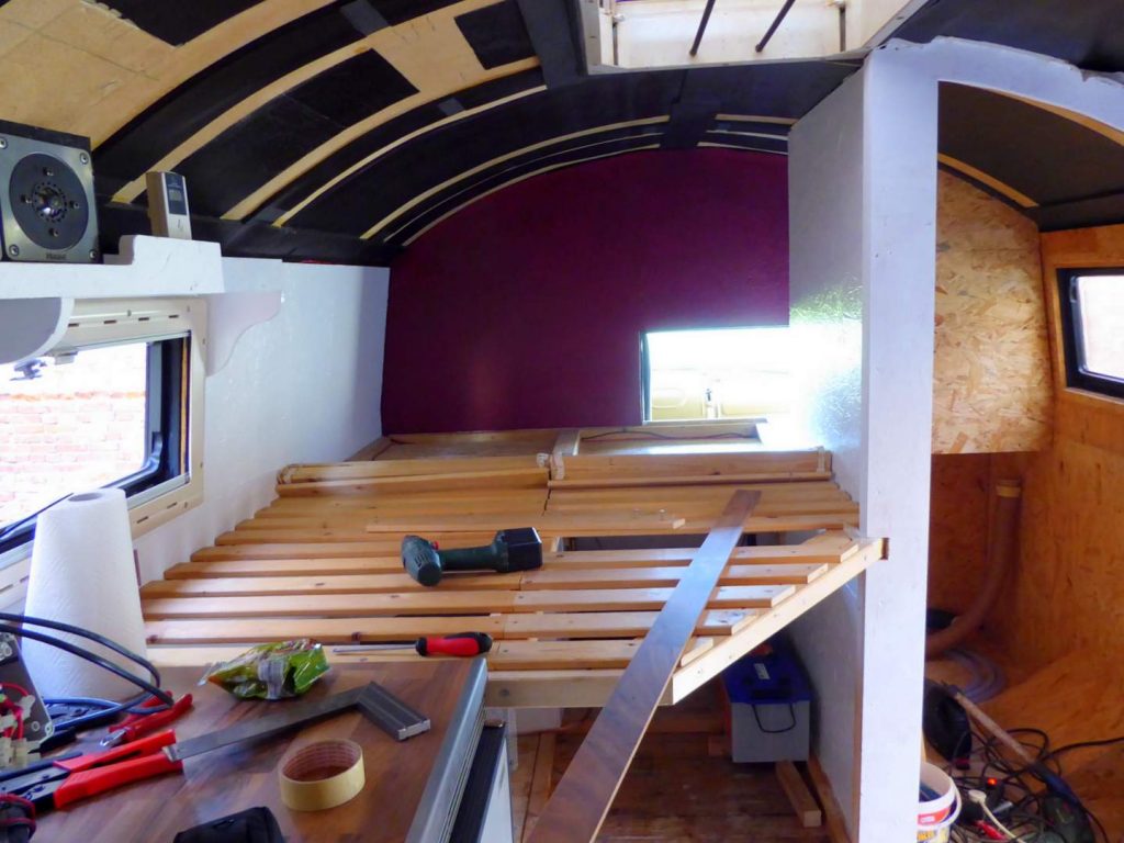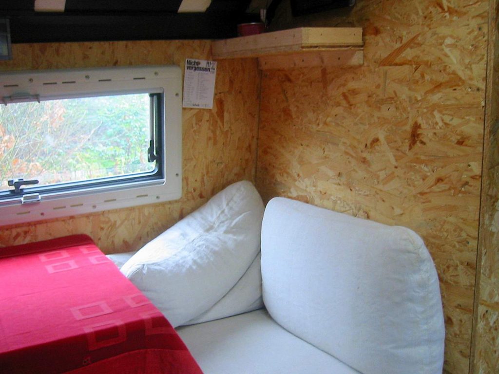 Und so werkelten wir den ganzen Sommer am neuen Reisefahrzeug. Statteten es mit einem minimalistischen OSB-Platten Interieur aus.