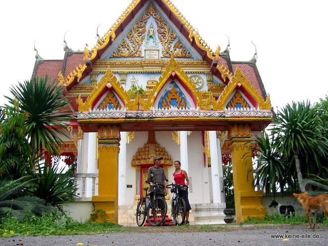 Ja, und weil die Steffi immer nach flach liegt, muss Olaf heute mal ganz alleine unser Reisetagebuch schreiben. Hoffentlich ist es morgen wieder gut. Da wollen wir uns mit Maren und Peter treffen, dann gibt es unsere Kamera und einen neuen Kauderwelsch-Thai-Sprachführer und mit etwas Glück im Fahrradladen auch neue Schläuche und Felgenbänder für Olafs Rad…