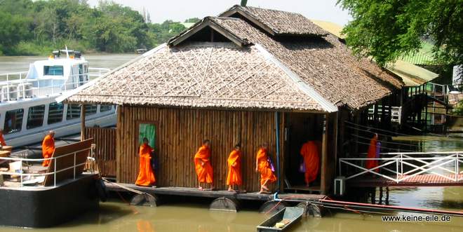 Heute ist unser letzter Abend hier in Kanchanaburi. Wir sind ein bisschen traurig, dass wir wegfahren „müssen“, weil es uns hier auch ohne Palmenstrand und Meer sehr gut gefallen hat. Obwohl wir zuerst ein bisschen skeptisch waren, wegen der vielen Diskotheken, Restaurants und Diskoflöße, die über den Fluss fahren, hielt sich der Rummel auch am Wochenende sehr in Grenzen.