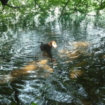 Die Lieblingsbeschäftigung von Lucy ist ja bekanntlich (gleich nach Fressen und Schnuppern): Schwimmen! Um an einen See zu gelangen, ist kein Weg zu weit und keine Mühe zu groß. Dazu hat man schließlich Personal!