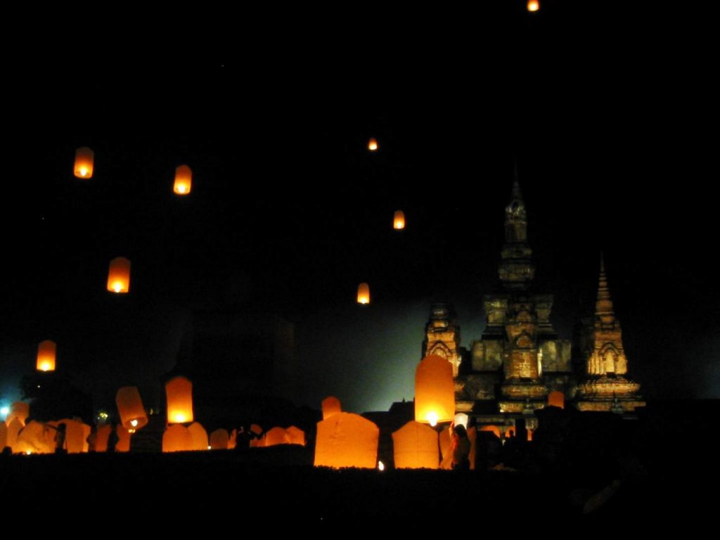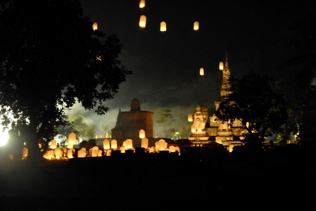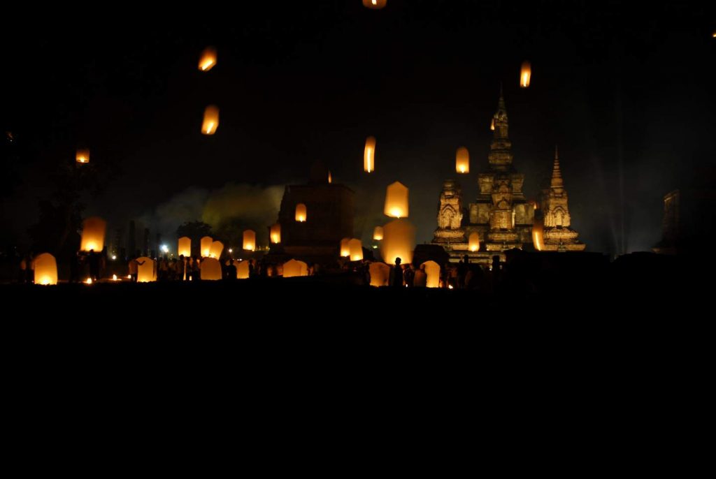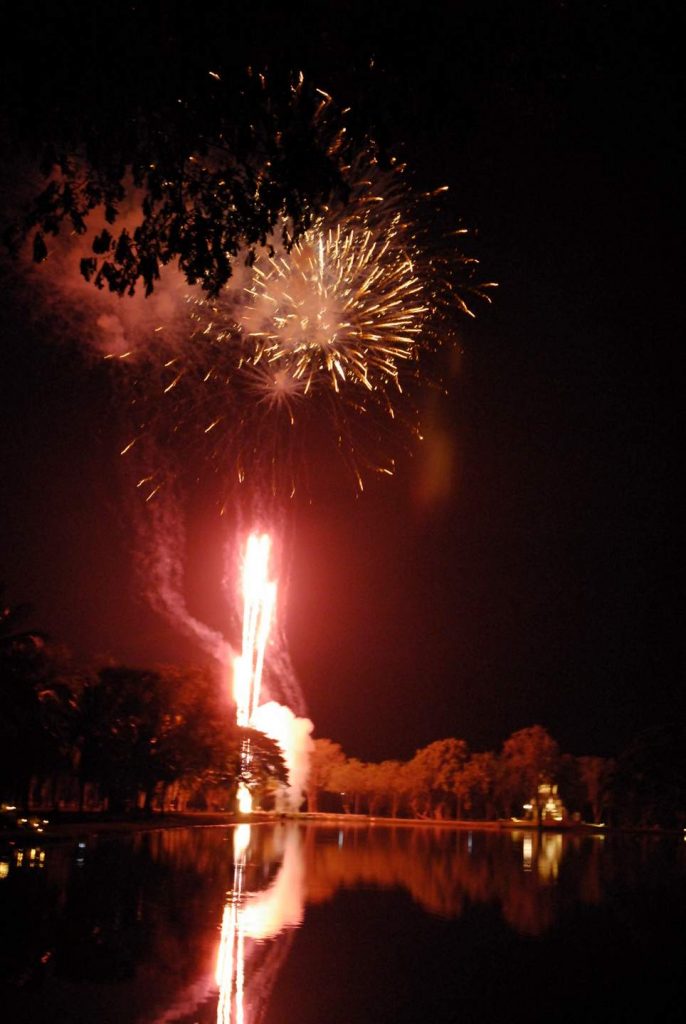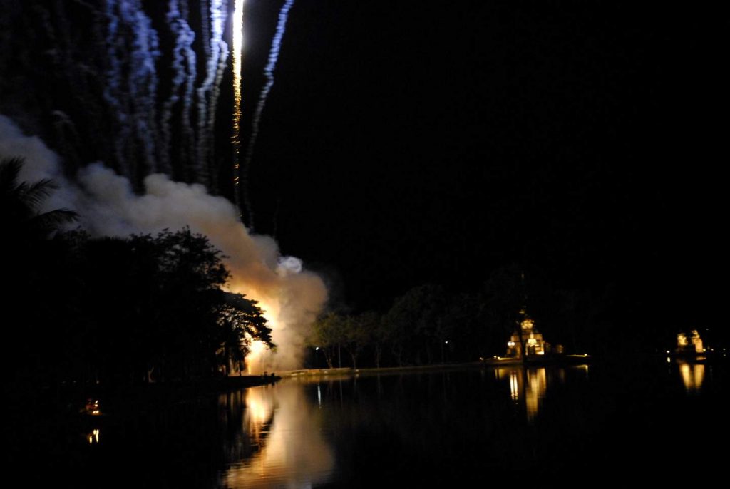 Die Ruinenstadt ist mit vielen Lichtern geschmückt, es gibt Musik und viel zu essen, alle haben gelbe Shirts an (die Farbe des Königs). Zum Höhepunkt des Abends schmücken ein großes Feuerwerk und viele Feuerballons den Nachthimmel.