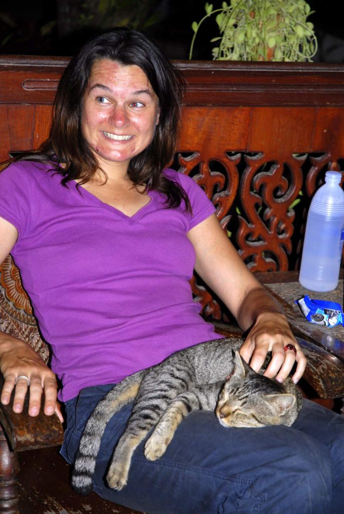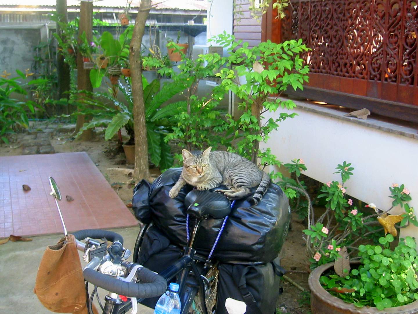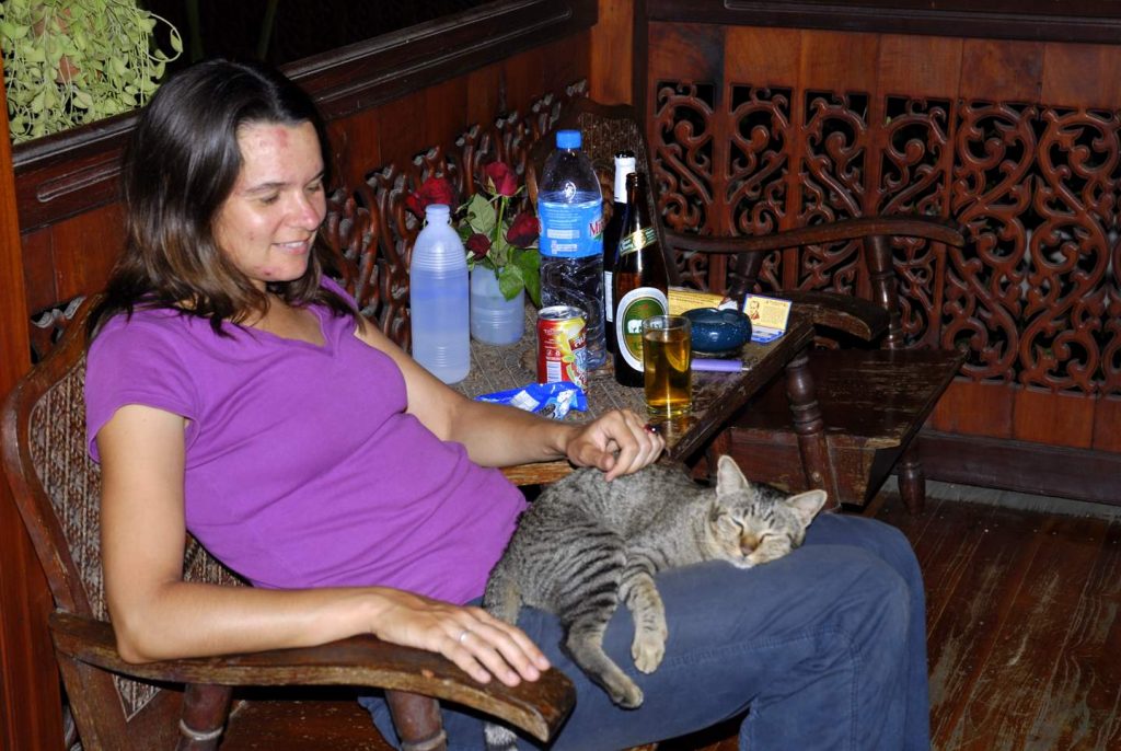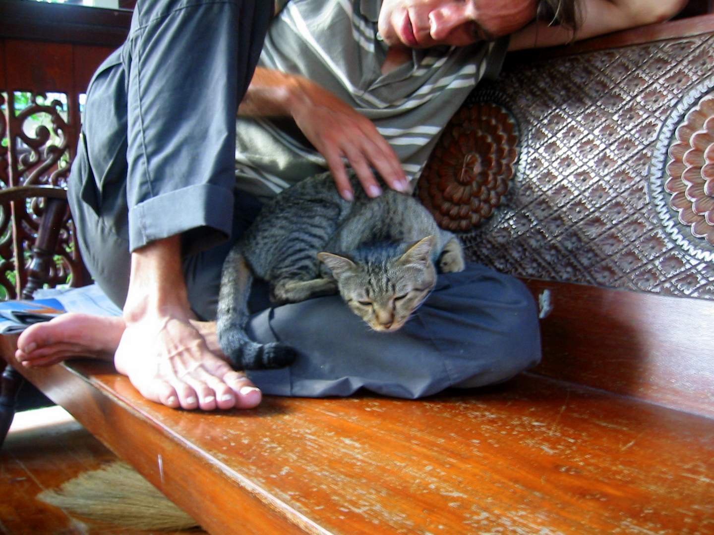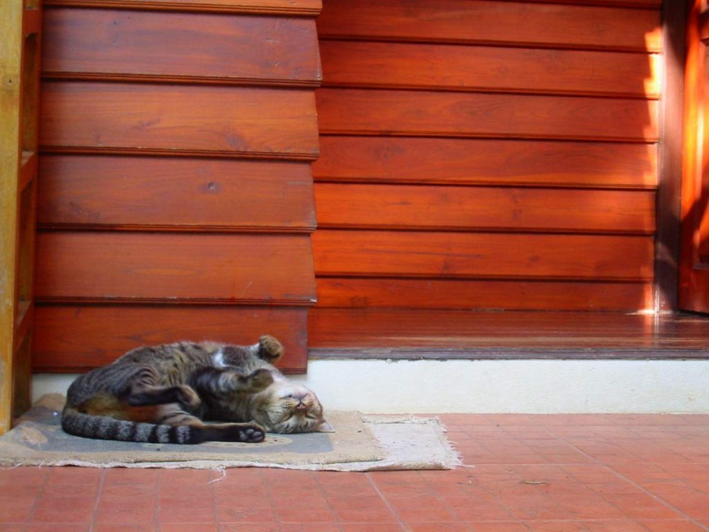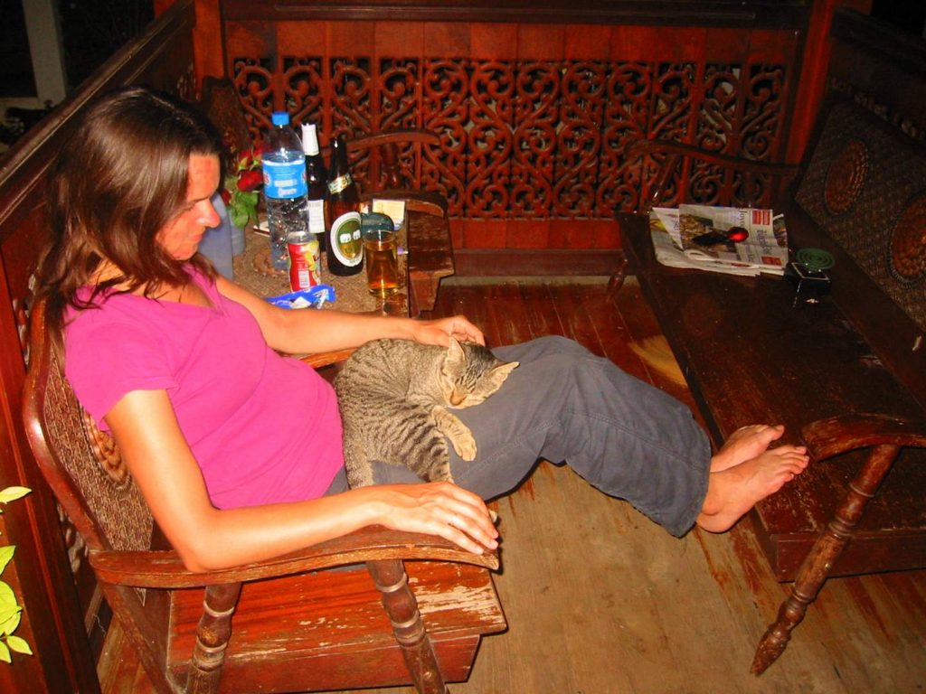 Unsere neue Katze weicht nach wie vor nicht von unserer Seite. Wenn sie nicht auf der Fußmatte vor unserem Bungalow geschlafen hat, dauert es meist nicht lange und sie gesellt sich zu uns, wenn wir beim Frühstück sind. Auch wenn wir nachmittags vom Essen oder der Arbeit im Internetcafé nach Hause kommen, sind wir nicht lange allein.
