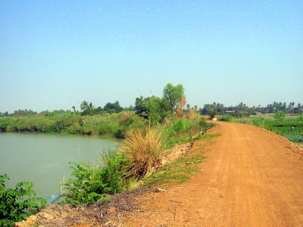 Um dem Straßenlärm zu entfliehen entschließen wir uns für den Rückweg auf dem Deich entlang des Flusses zu fahren. Dies geht so lange gut, bis uns kurz vor Sukhothai ein Mitten auf der Deichkrone angelegter Gemüsegarten den Weg versperrt und man uns durch die Höfe und Gärten der Nachbarn zurück auf die Straße winkt.