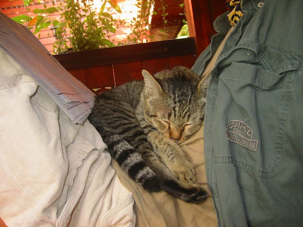 Schuheputzen hat sich gelohnt! Seit gestern nachmittag haben wir eine kleine Thai-Mietze (Katze), die einen Großteil ihrer Freizeit mit uns verbringt.