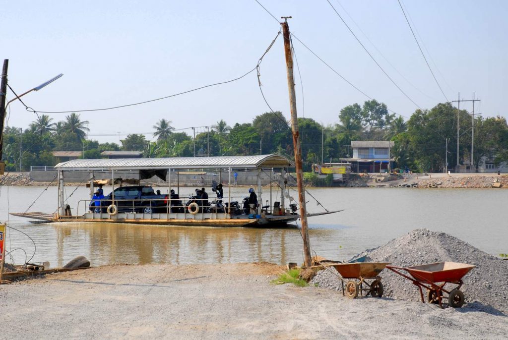 Da sich die letzten Meter der Brücke noch im Bau befinden, queren wir den Fluss ein Stück weiter flussaufwärts mit einer kleinen Fähre.