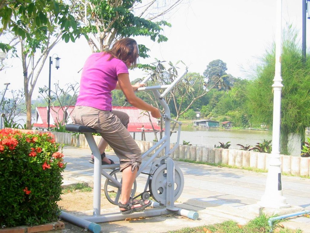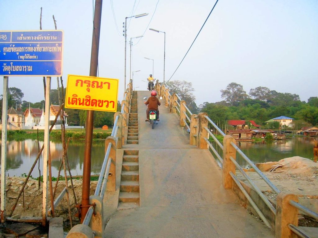 In den noch kühlen Morgenstunden des 1. Dezember beladen wir unsere Drahtesel und fahren stromaufwärts entlang des Chao Phraya. Das Fahren macht Spass, es gibt nur wenig Verkehr und die meiste Zeit können wir im Schatten der Bäume fahren.