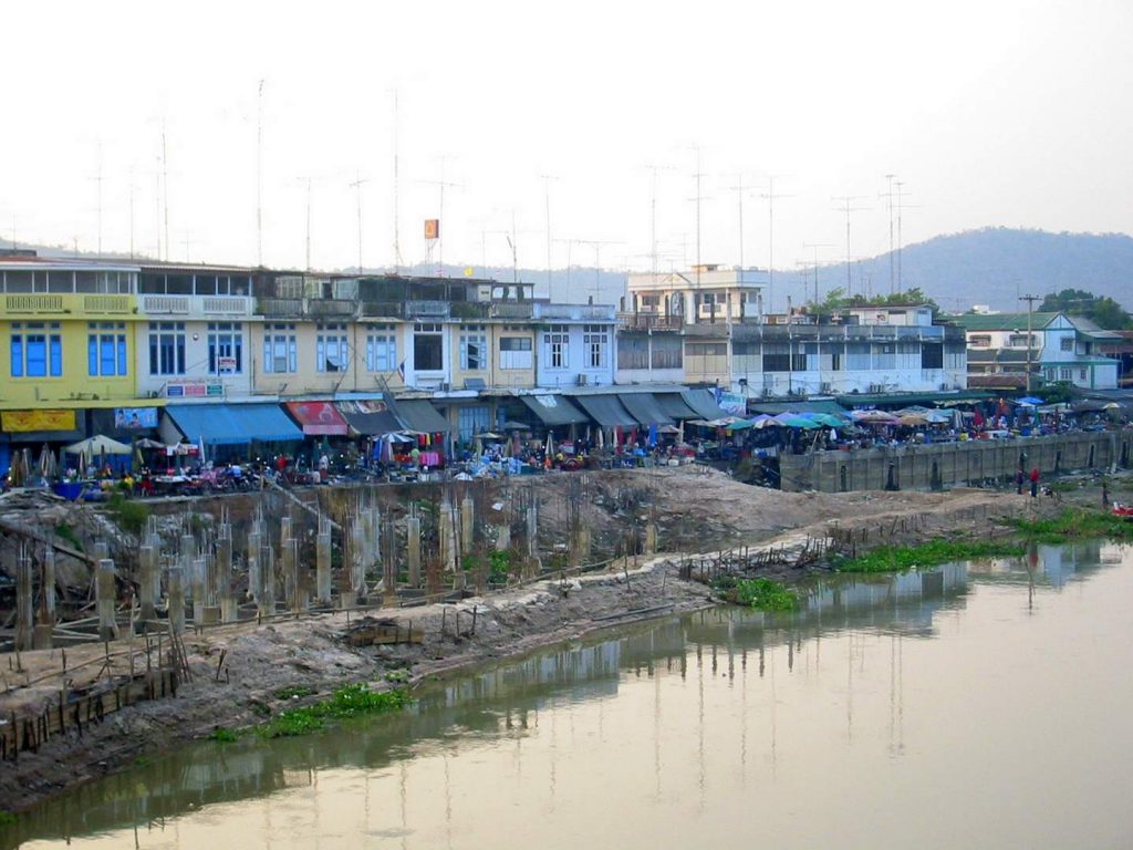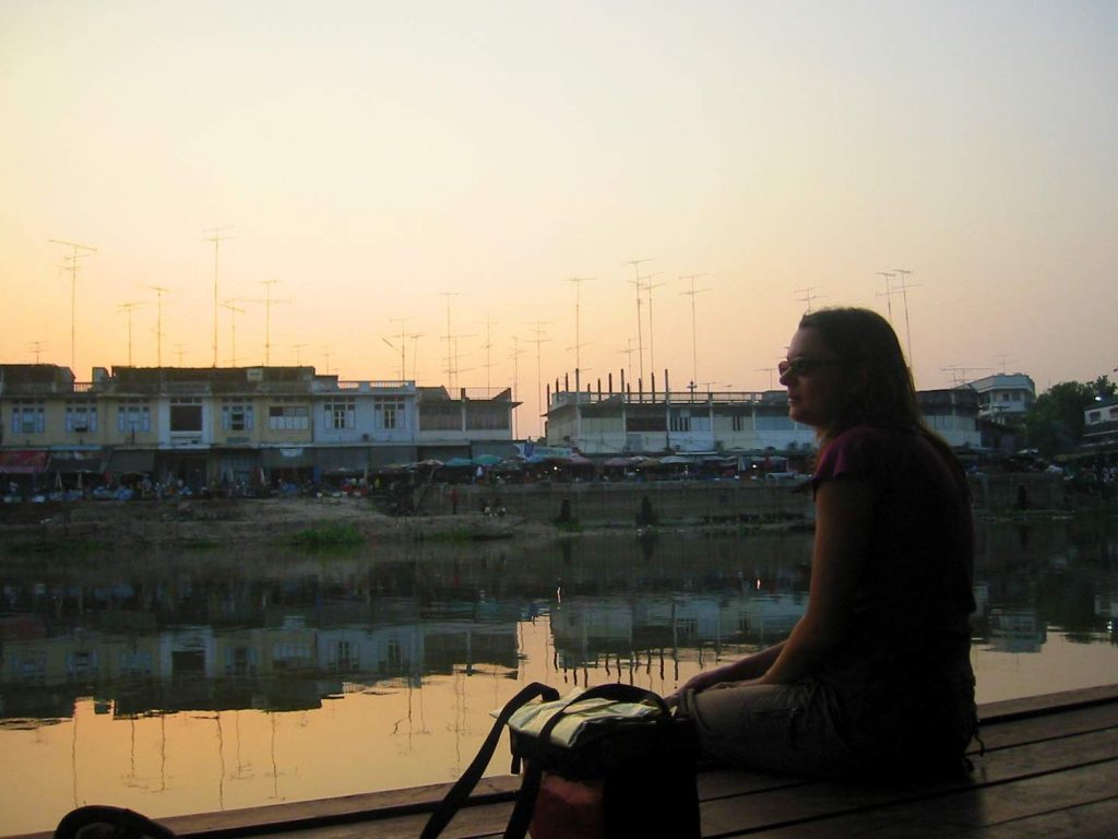 Nach einer erfrischenden Dusche drehen wir eine Runde durch den Ort und über den Markt, decken uns mit Essen und Trinken ein und picknicken auf der gegenüberliegenden Flussseite auf einer zum Tempel gehörenden schwimmenden Hütte.