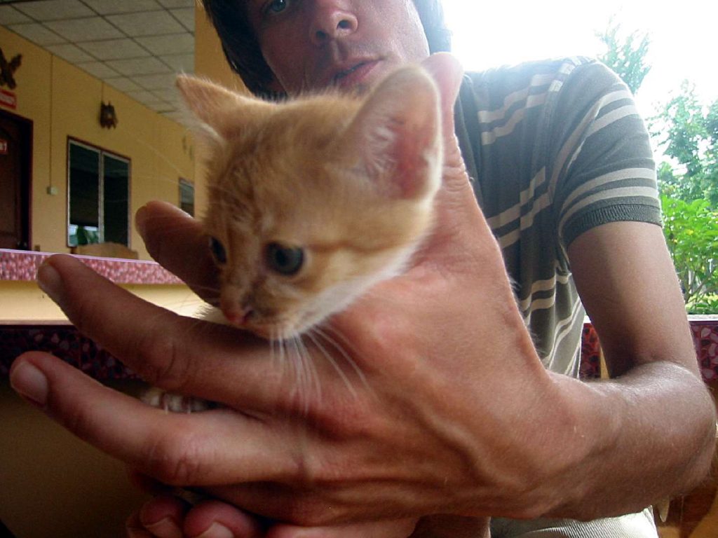 Wir finden ein schönes Zimmer in einem viel zu großen, fast leeren Resort. Es gibt einen schönen Garten, Satelliten TV mit 100 Programmen und vor unserer Terrasse wohnt eine Katzenmutter mit ihrem Nachwuchs.