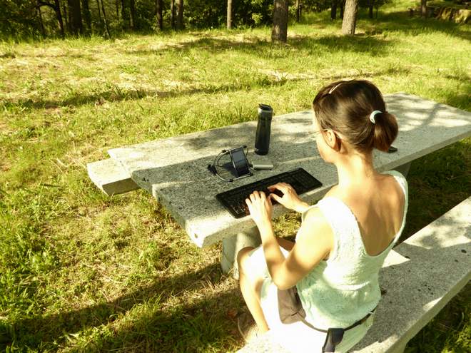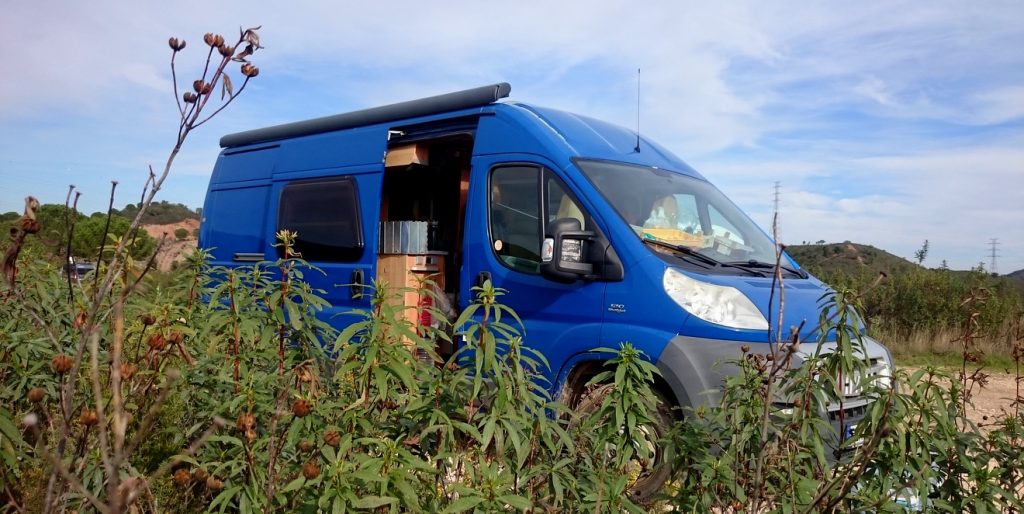Ein Kastenwagen ist für uns das ideale Fahrzeug um darin zu leben und zu reisen – natürlich in Länder mit gutem Wetter, denn der Wohnraum ist klein. Wir lieben unsere große Schiebetür denn auch wenn wir drinnen arbeiten müssen, sind wir doch mit der Landschaft verbunden. Wir suchen uns natürlich entsprechende Stellplätze, an denen dies möglich ist und wir niemanden stören.