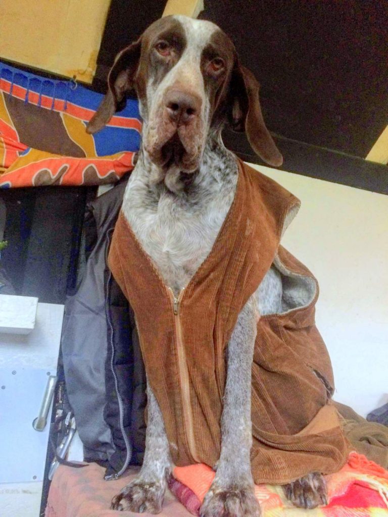 Vor einem Raiffeisen Markt in der Provinz treffen wir einen passionierten Jäger, der sich für Greta interessiert. Er schätzt ihr Alter auf deutlich über 10 und stellt fest, dass sie in keiner guten Verfassung ist.