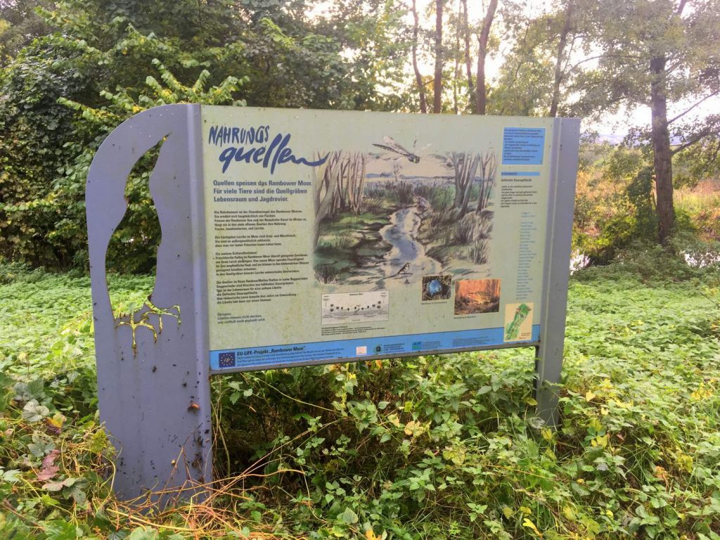 Um das Moor herum wurde ein etwa 12 km langer Weg angelegt. Es gibt einige Informationstafel zur Natur und Geschichte des Rambower Moores am Wegesrand.
