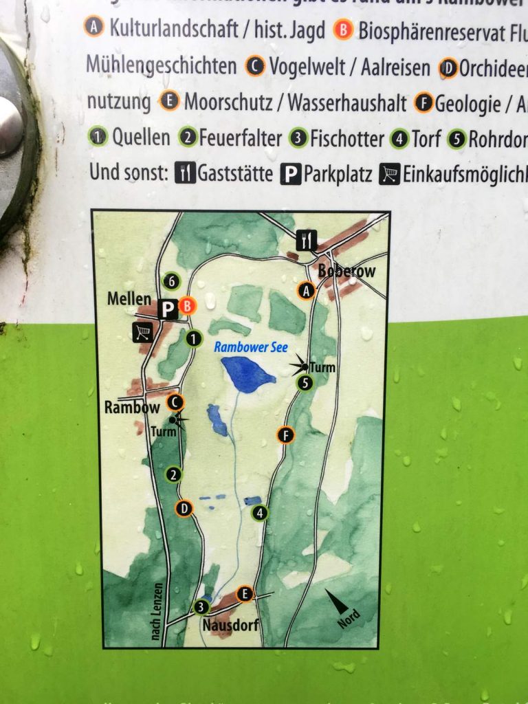 Es gibt mehrere Möglichkeiten den Rambower Moorrundweg zu starten. In Boberow, in Nausdorf, in Rambow und in Mellen.