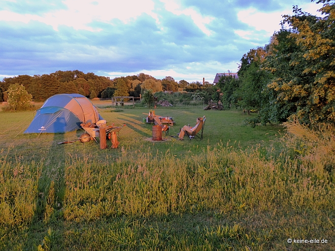 Im Zelt bin ich zum Frühaufsteher geworden… hätte ich auch nicht gedacht. Aber die Hitze treibt mich so gegen 6 raus. Trotzdem schlafe ich sehr gut. Und höre die Geräusche der Nacht, was unheimlich spannend ist.