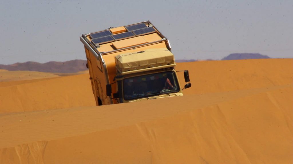 Martin hat früher seine Reisen zuerst mit dem Motorrad gemacht und ist dann mit dem Fahrrad unterwegs gewesen, daher gab es nicht viel Vorwissen was die mehrspurigen Fahrzeuge angeht. Das LKW Feeling sollte es aber schon sein.