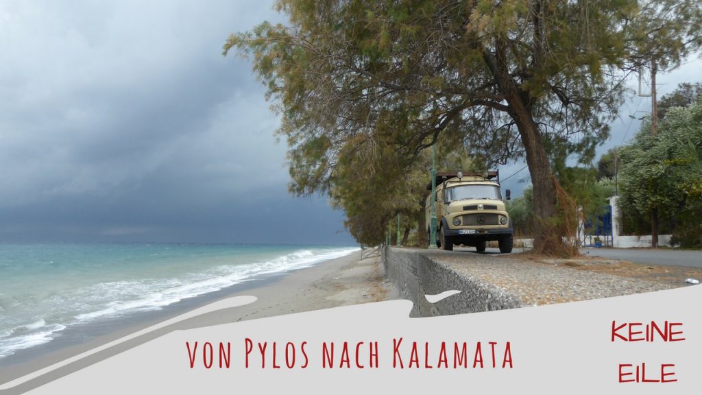 Wir nehmen den langen Weg von Pylos nach Kalamata. Mit dem Wohnmobil fahren wir immer an der Küste des ersten Peloponnes Fingers entlang.