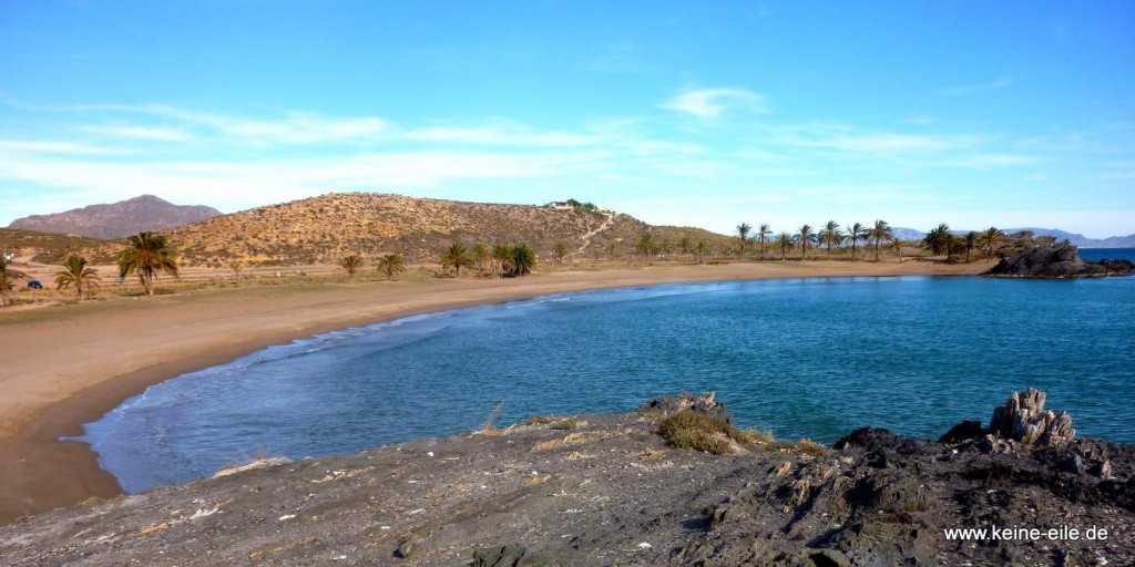 Geht man die Piste nach Überquerung der „Ziegenwiese“ weiter, gelangt man nach einem weiteren Kilometer in die „Schlagenbucht“, die „Playa Percheles“.