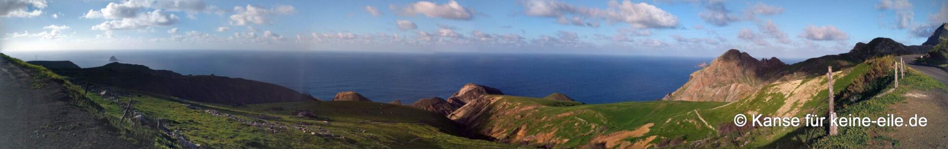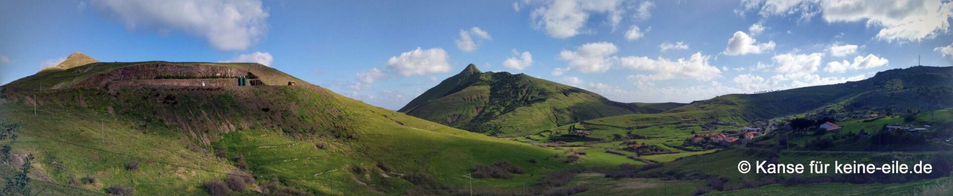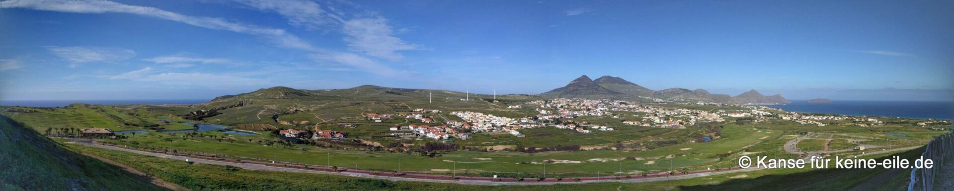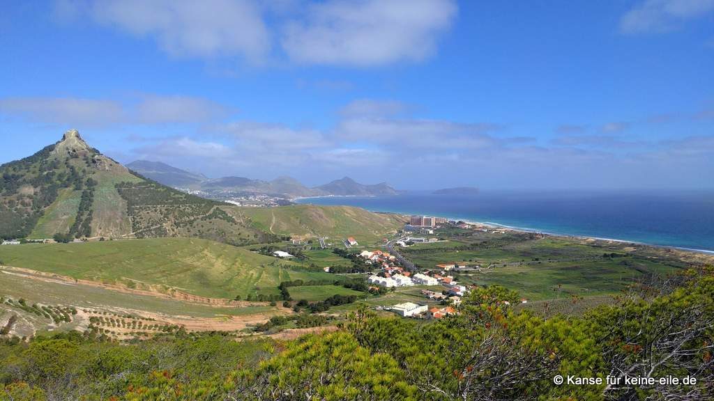 Es regnet von April bis Oktober fast gar nicht und ein Bewässerungssystem, wie die Levadas auf Madeira, gibt es auf Porto Santo nicht. Daher habe ich – als Februar-Urlauber – hier viele grüne Fotos von der Insel, während viele Urlaubsvideos auf YouTube meist im Sommer entstanden sind, wenn die Insel komplett beige gefärbt und das Gras ausgetrocknet ist.