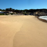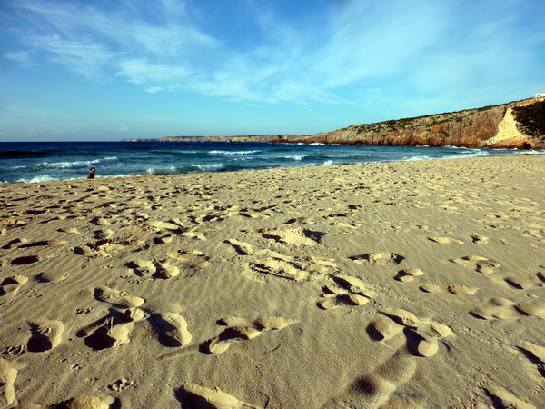 Das gibt es nicht alle Tage hier! Strandwetter, fast Badewetter… in einer aus Steinen errichteten Strandburg am Praia Barranco tranken wir ein Sagres-Willkommensbier (die Biermarke der Algarve heißt „Sagres“ und das gibt es sogar als Sagres-Mini in 0,2 ltr. Flaschen – genau meine Größe) und unterhielten uns über Indien – ach Indien!