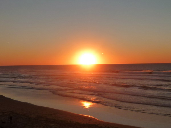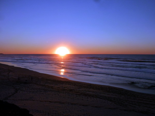 An der Westküste verschwindet die Sonne direkt im Meer. Und heute gibt es nicht mal diese kleine Wolkenschicht, die sich oft direkt über der Wasseroberfläche befindet und die Sonne in den letzten Minuten doch noch einhüllt. Heute ist es klar.