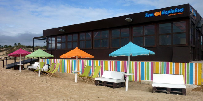 Ein Stückchen hinter den letzten Häusern endete die Straße an einem Parkplatz am Strand. Ein Strandrestaurant hatte bunte Plastikstühle vor die Tür gestellt und versuchte mit legerer Chillout-Musik Gäste anzulocken. Außer uns war allerdings niemand dort, der hätte angelockt werden können.