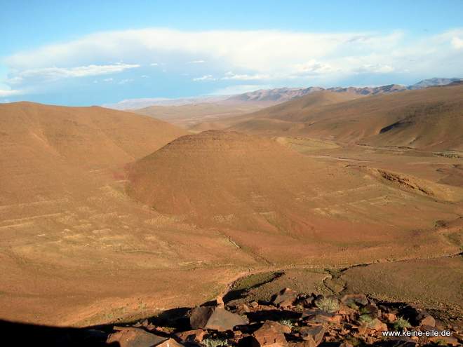 Am Rande des Plateaus steht ein rotgestrichenes, kleines Haeuschen, in dem 1-3 junge Marokkaner wohnen, die sehr viel Zeit mit dem Fangen von Fischen verbringen.