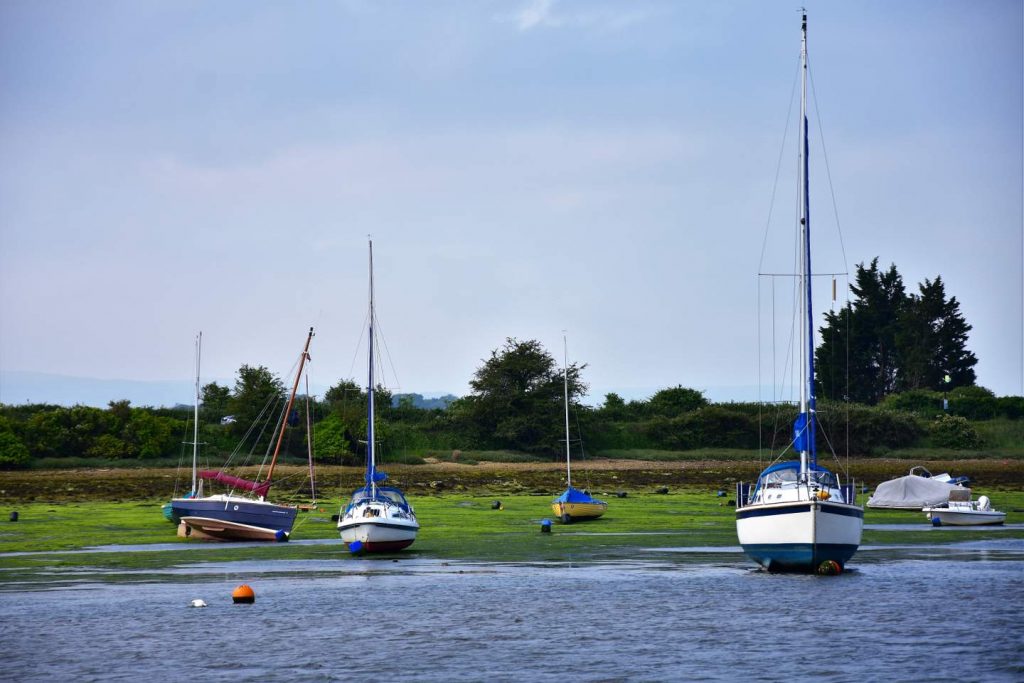 Bembridge gehört zu jenen Häfen, die „trockenfallen“, es gibt hier Bereiche, die bei Hochwasser völlig harmlos aussehen. Kleine Motoryachten und Segelboote, an Bojen befestigt, schaukeln in den Wellen, bis… der Wasserspiegel sinkt.