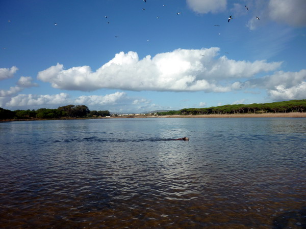 Lucy ging täglich mehrere Bahnen in der Lagune schwimmen. Sie genoss dies offensichtlich, obwohl das Wasser ziemlich kalt war und ihre Beine immer knallrot waren, wenn sie wieder herauskam. Das Meer war wesentlich wärmer, doch dort störten die Wellen.