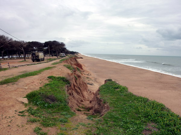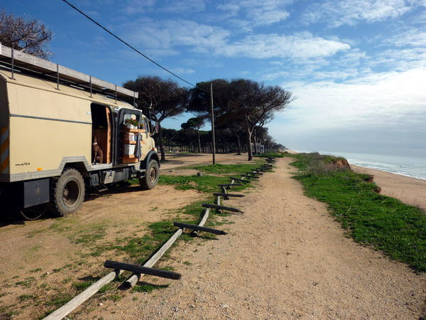 Herbert hatte geschwärmt von einem Platz neben dem Ort Quarteira. In seinem Navi trug er den Namen „Super-Geil-Quarteira“. Das hatte mich neugierig gemacht. Vor allem, weil ich dachte (Achtung Vorurteile!), dass es im massentouristischen Teil der Algarve (rund um Albufeira, Vilamoura, Quarteira), wo unsere Karten nur Straßen, Straßen und nochmals Straßen anzeigten, unmöglich wäre, einen schönen und ruhigen Platz, oder überhaupt einen legalen Parkplatz zu finden.