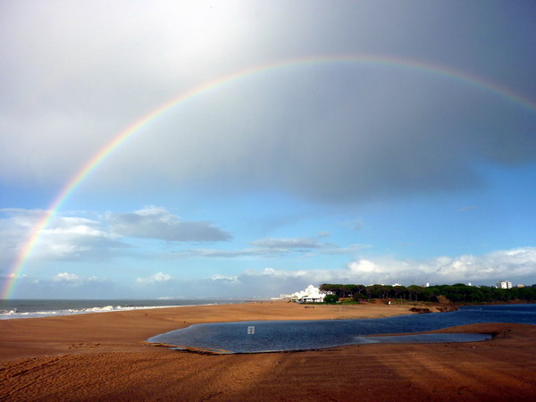Eine kleine Straße führte an ein paar Häusern vorbei und durch ein hübsches Wäldchen an einem Fluss- oder Seeufer entlang zum Strand. Keine Felsen, keine Klippen, viel Sand, das Meer und der See. Quarteira war zu sehen, viele Angler waren am Strand. Wie versprochen – Super-Geil-Quarteira!