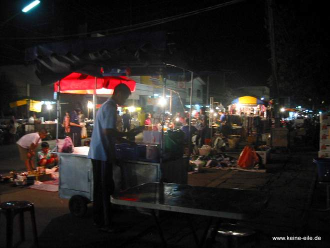 Mittags kaufen wir an einem Bordsteinhühnergrill unser Abendessen. Leider ist kein Reis mehr vorrätig. So was ist hier meist gar kein Problem, denn dann schwingt sich halt jemand auf sein Moped oder zieht sich kurz die Schlappen an und organisiert das gewünschte in der Nachbarschaft.