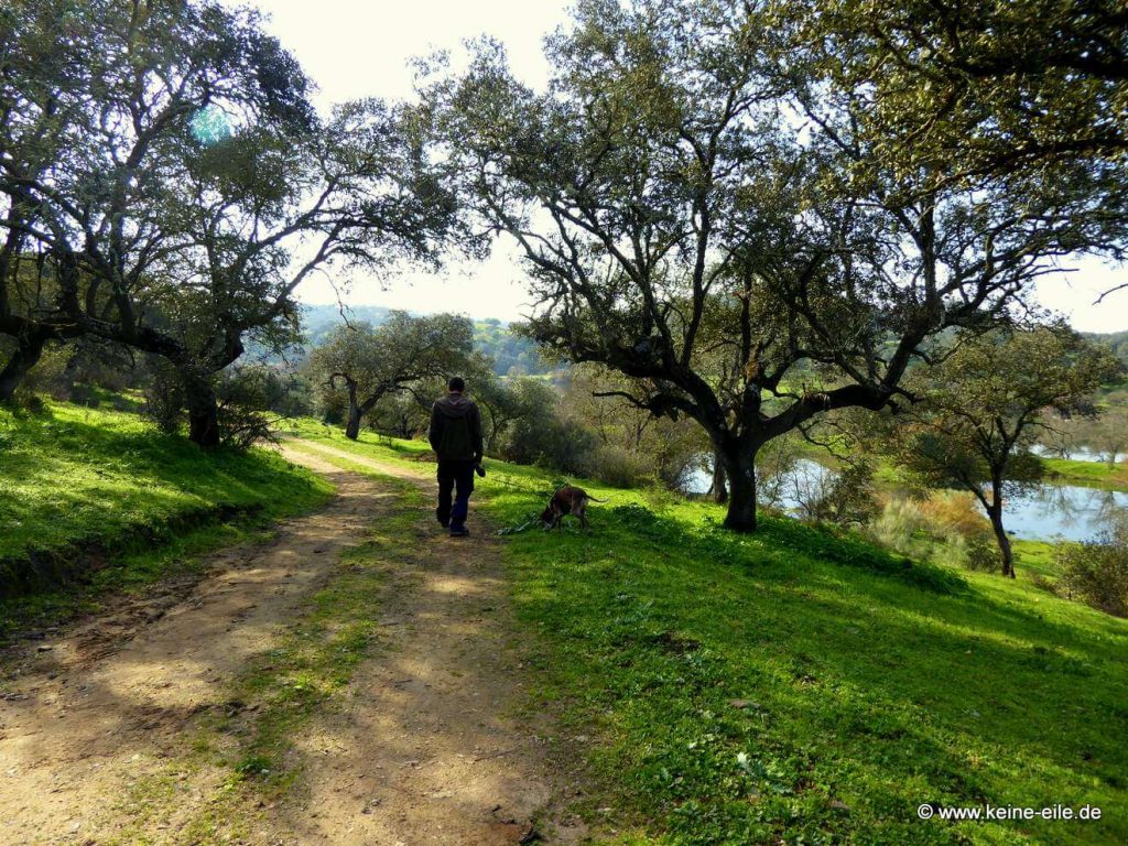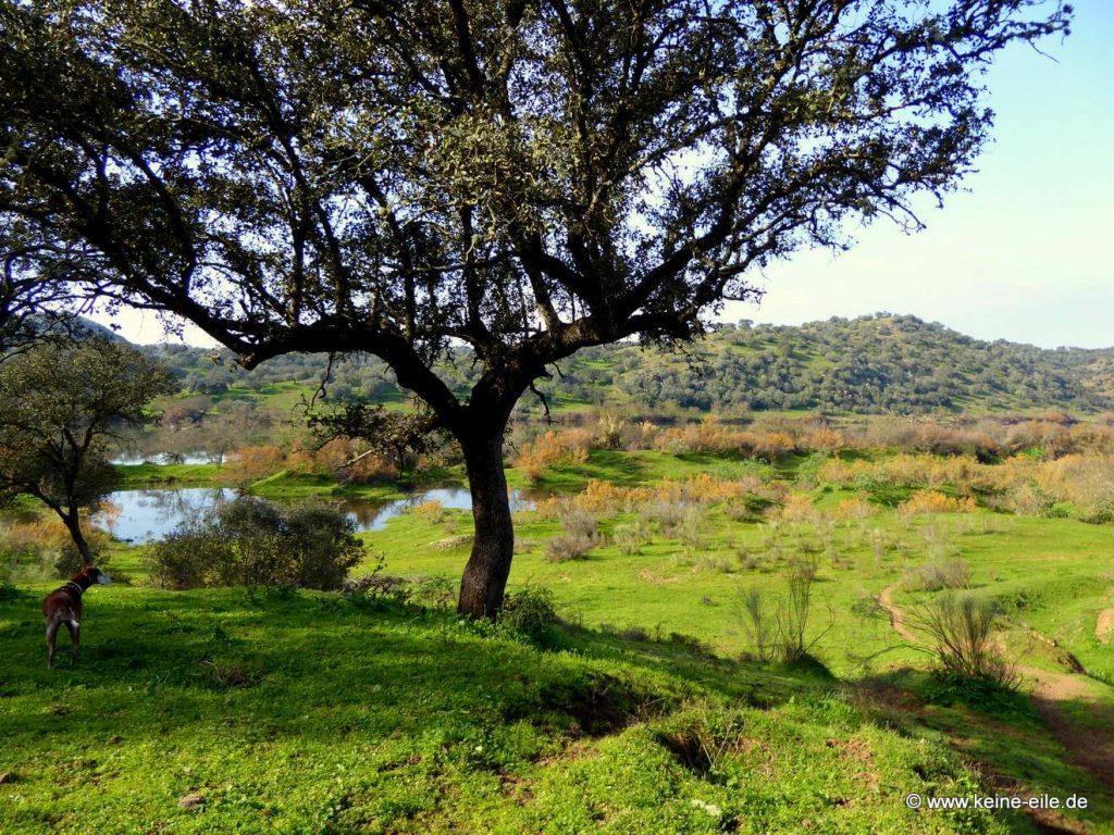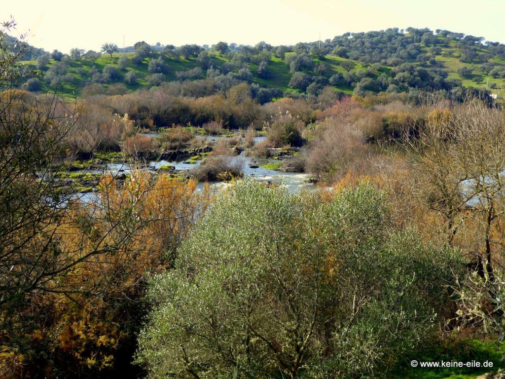 Irgendwann finden wir eine halbwegs brauchbare Möglichkeit, um wieder an den Rio Guadiana zu kommen, der sich hier durch ein weitläufiges Tal schlängelt.