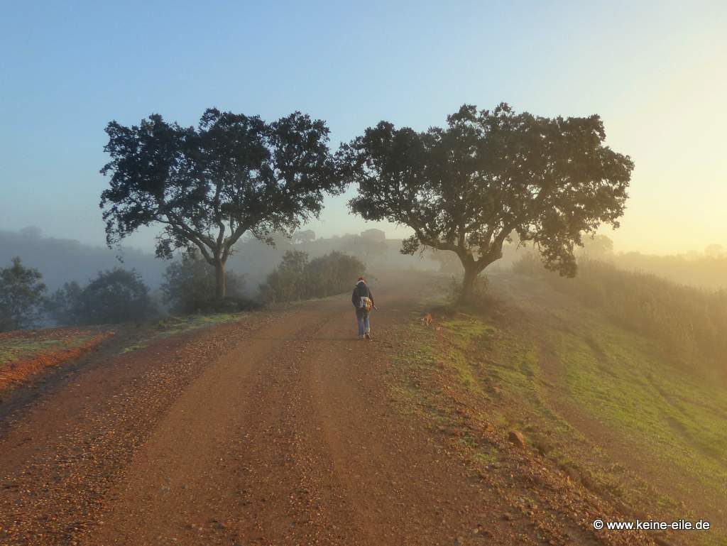 Im Anschluss geht´s dann endlich weiter. Die Straße aus Serpa in Richtung Südwest führt durch unendliche Olivenhaine. Es ist kaum Verkehr. So macht Autofahren Spaß!