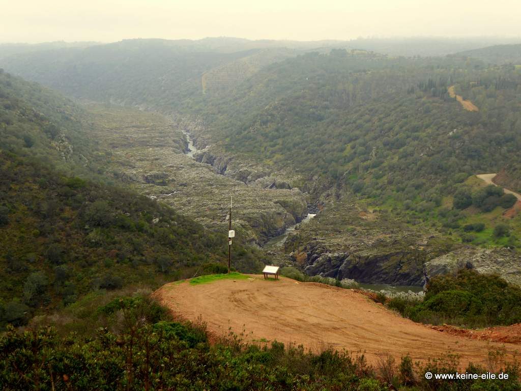 Es geht über eine frisch planierte Piste Richtung Rio Guadiana und dann endet der Weg direkt an einem Abgrund mit grandiosem Ausblick auf den Fluss.