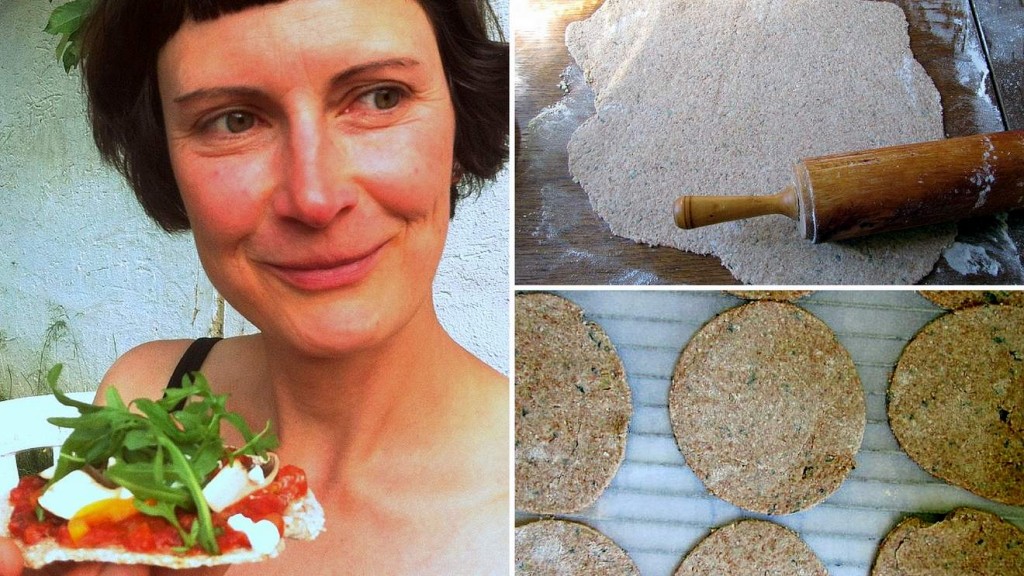 Fladen rollen und in der Sonne trocknen lassen. Tomatensauce: frische und getrocknete Tomaten schneiden mit etwas Salz und Honig vermengen und abschmecken, Paprika, Zucchini, Rucola (alles roh) klein schneiden und auf die Sauce legen.