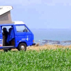 Es war ein von Westfalia ausgebauter Kastenwagen mit langem Radstand, der hinten eine aus Kunststoff gegossene kleine Nasszellenkabine inkl. Dachluke hatte. Porta Potti raus, Gasgeyser an und schon hatte man muggelig warmes Wasser.