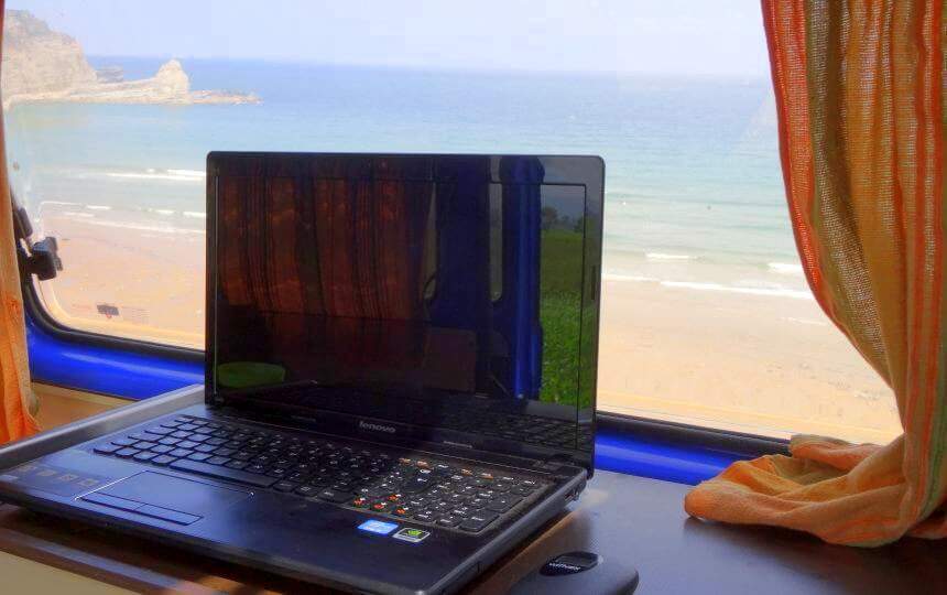 In Europa ist das schon deutlich einfacher, vor allem im eigenen VW-Bus mit mobilem WLAN-Router und der Freiheit, immer an ein ruhigeres oder luftigeres Plätzchen zu fahren.